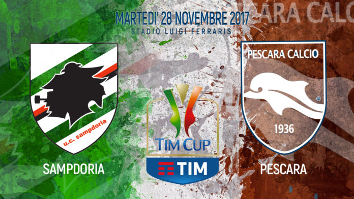Tim Cup – Samp Pescara. Martedì 28 novembre, ore 21, quarto turno eliminatorio. Si gioca allo stadio ” Luigi Ferraris” di Genova. Gara secca. Info biglietti tifoseria ospite.