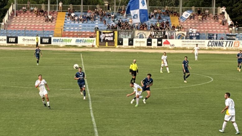 Segnali incoraggianti in casa biancazzurra in vista del campionato. Cerignola battuto 2-0 con i gol di Bentivegna e Cangiano nel primo tempo. Squadra solida con il 4-3-3 e che ha concesso poco o nulla ai pugliesi. Assenti per infortunio (nulla di grave) Pellacani e Moruzzi. A fine partita ha parlato il terzino Carlo Crialese.