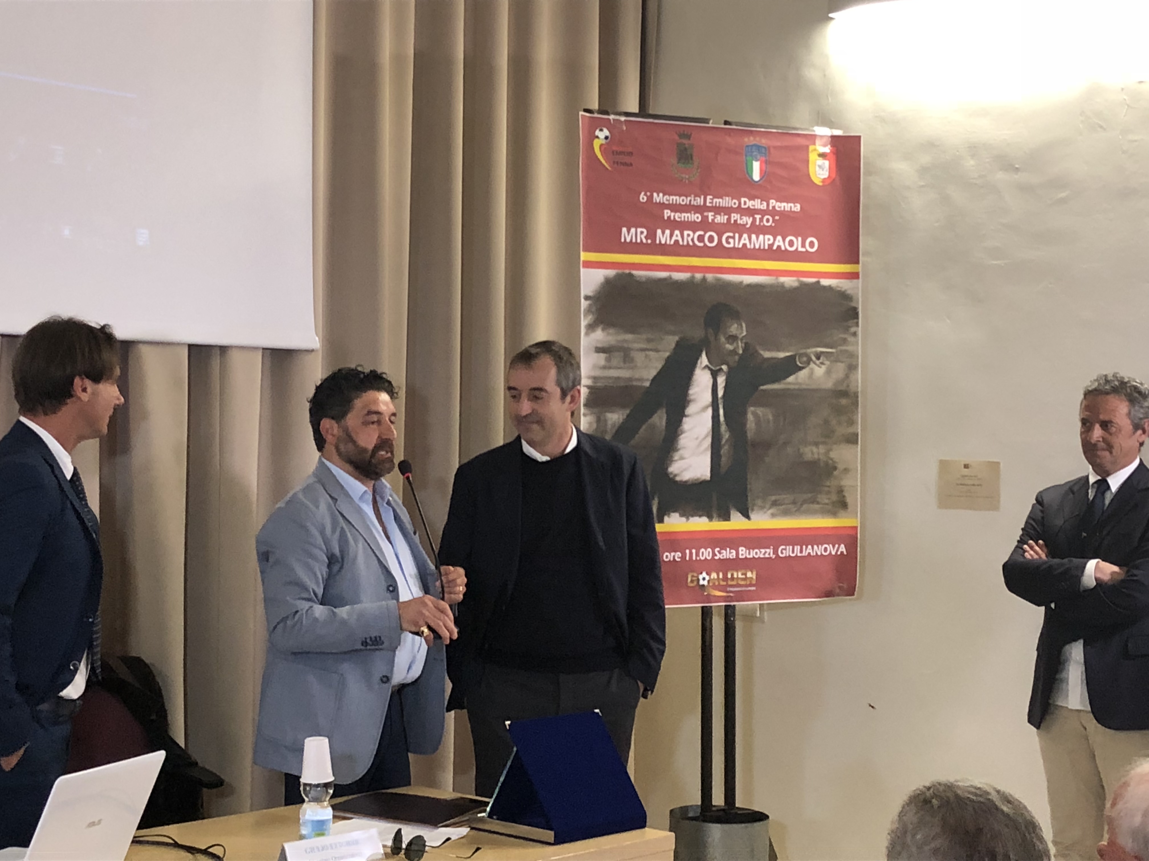 Marco Giampaolo ha ricevuto il premio fair play a Giulianova per il sesto memorial Emilio Della Penna. Il tecnico abruzzese ha toccato tanti temi. Dal Pescara al Giulianova facendo un augurio particolare a Federico attuale tecnico dell’Avezzano