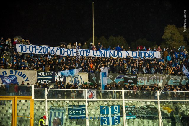 Tifoserie in fermento per Pescara Salernitana. Fino a questa mattina sono stati venduti 587 biglietti nel settore ospiti per assistere alla partita in programma domenica 19 gennaio. In curva nord, cuore del tifo biancazzurro, si ricorderà la figura di Marco Mazza, alias Bubù, a 14 anni dalla scomparsa.