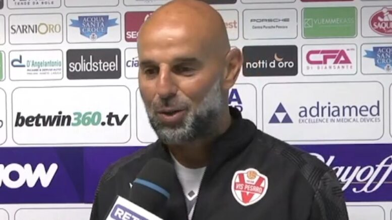 Il Tecnico della Vis Pesaro, Roberto Stellone, un po’ amareggiato per la gara persa all’andata contro il Pescara che ha compromesso l’incontro di questa sera all’Adriatico
