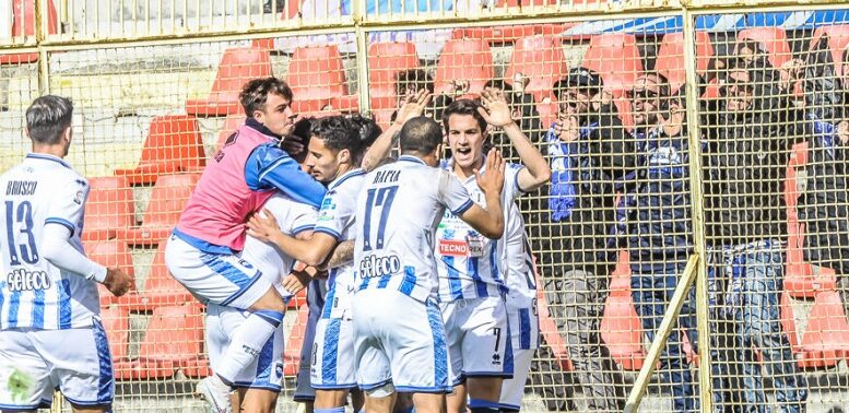 36′ PESCARA IN VANTAGGIO Punizione di Kraja, sponda aerea di Brosco e destro vincente di Cuppone.