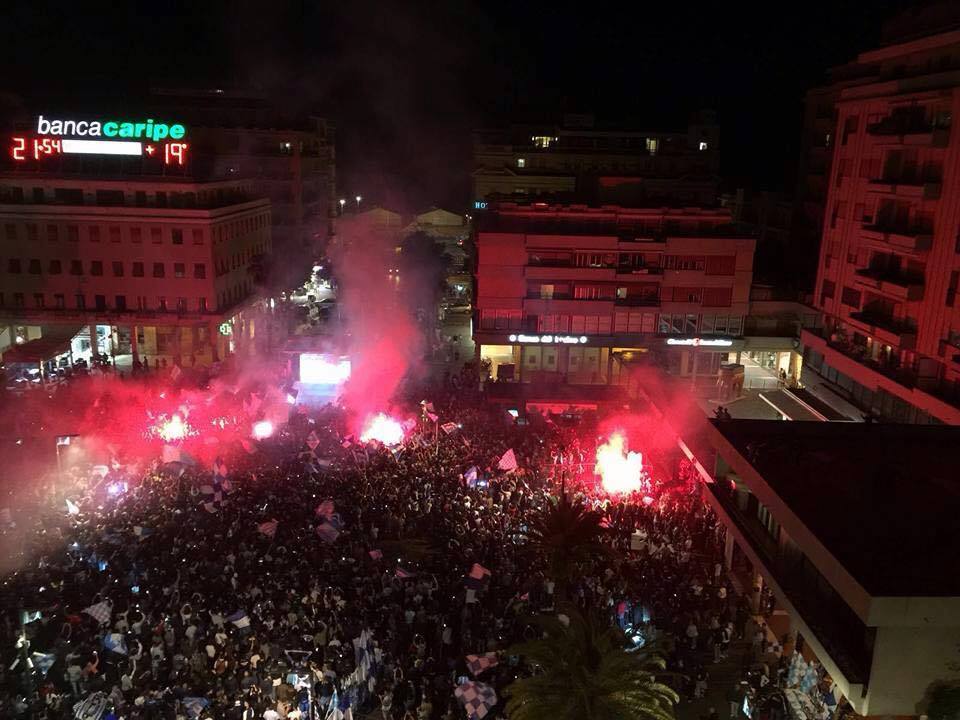 Un tourbillon di emozioni rigorosamente biancazzurre per raccontare lo stato d’animo di una città intera che continua a festeggiare la sua Serie A. Da Trapani a Piazza Salotto, dalle strade della città all’aeroporto con il rientro a tarda notte della squadra fino alla premiazione in comune nella tarda mattinata di oggi. E domani il grande saluto alla città con la partenza dallo stadio Adriatico alle 17 30 con un autobus scoperto che farà il giro della città prima di arrivare a piazza della Repubblica. E il presidente Sebastiani pensa già concretamente al prossimo campionato. Dichiarazioni strappate in mattinata nell’incontro al Comune