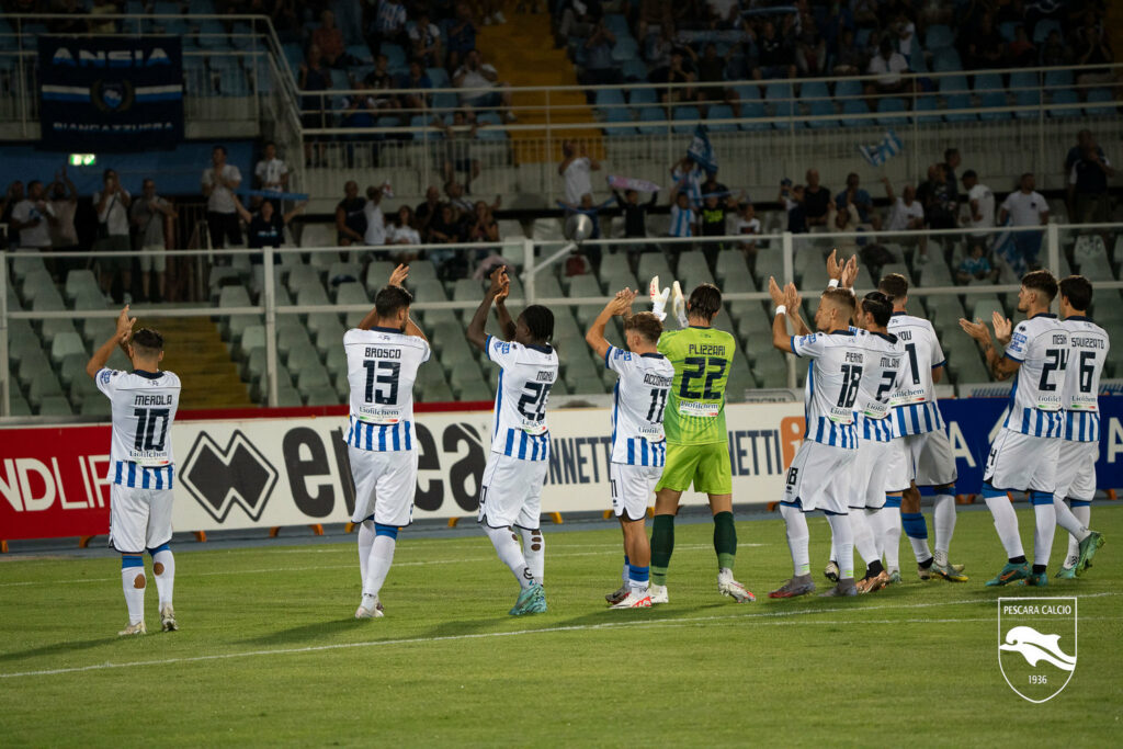 Finisce 1-1 il big match del Curi. Il Pescara interpreta bene il primo tempo e costruisce tante limpide palle gol. Clamorosa quella che Cuppone regala a Merola ma l’ex Foggia tutto solo con il sinistro esalta Adamonis. Da applausi la giocata, tipica del calcio zemaniano. Giocate ripetute in continuazione con Milani che è in versione “special” sulla corsia di sinistra ma Accornero per due volte non concretizza. E una volta alpi sul cross lungo del numero tre si coordina bene ma calcia male. Il Perugia del primo tempo? Timido ma tremendamente pericoloso quando ha spazio. Una volta Plizzari sbaglia l’uscita ma gli umbri lo graziano, poi Bartolomei su punizione esalta l’ex Milan che manda sul palo. I tifosi biancazzurri? Arrivano al 42° e si fanno sentire. Ripresa. Pescara sempre bello e propositivo, Aloi con un destro sulla ribattuta del portiere firma il vantaggio, Cuppone però di divora il 2-0 in modo plateale e nel finale Cancellieri firma il pari su punizione. Cangiano nel finale ha la palla del match ma Paz è provvidenziale. Finisce 1-1, per il Pescara solo sorrisi se si guarda alla prestazione. Rabbia invece per i tre punti sfumati. Ma la strada è quella giusta. Bene Squizzato da regista, da applausi le giocate zemaniane. Ma le occasioni vanno concretizzate. Cuppone? Generoso come pochi. Ma tre contro uno doveva passare il pallone. Da Gigi la trottola a Gigi l’egoista. Tirata d’orecchie. Sabato prossimo all’Adriatico c’è L’Arezzo alle 20.45.