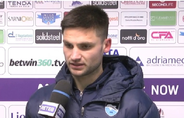 Il difensore del Pescara Filippo Pellacani analizza al 91′ la sconfitta del Pescara contro l’Ascoli