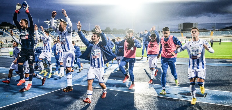 6′ PESCARA IN VANTAGGIO Merola corre a destra, punta l’avversario si accentra e calcia di sinistro. Palla in rete.