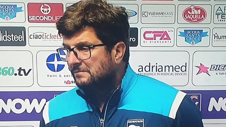 “Ecco la formazione. Plizzari, Pierozzi, Brosco, Staver, Letizia; Dagasso, Squizzato, Valzania; Merola, Tonin, Cangiano. Settimana di lavoro? Mi sono stufato di dire ai ragazzi che si è fatto un bel lavoro. Ed allora ho detto ai giocatori che dobbiamo fare uno step e cambiare marcia. Come? Mettendoci la testa giusta. Dobbiamo vincere la partita prima ancora di giocarla. Dobbiamo avere voglia e testa di fare le cose giuste. Un pò come fatto contro il Rimini. Poi nella vita ingenerale ci sono gli imprevisti come i pali. Ma sabato scorso ci abbiamo provato bene. Dobbiamo crederci con la testa e andare in campo con la consapevolezza di vincere. Difesa cambiata? Il nostro pensiero deve essere quello di arrivare in fondo nonostante le mille difficoltà. Dobbiamo avere voglia di stupire e di dire: ci abbiamo provato. Non dobbiamo sentirci appagati se abbiamo fatto il nostro compito. Dobbiamo avere il coraggio di provare ad andare oltre il nostro limiti. E non è facile. Ma questo è compito mio. E credetemi non penso alle difficoltà legate alle assenze di Crialese, Moruzzi e Pellacani. Sapete cosa dico ai ragazzi? Io non faccio il c…andando in tv a dire che voglio la B e la A. Lo faccio perché alzo l’asticella e perché mi pongo degli obiettivi da raggiungere. Letizia? Non ha problemi ha spesso giocato a sinistra. La cosa che mi è piaciuta di Gaetano è che si è buttato in questa avventura con lo spirito giusto. Mi ha detto: mister mi sento più giovane con questo spirito. Oggi gioca perché siamo in emergenza ma poi sarà il campo a dire chi meriterà di giocare. Merola? Non mi era piaciuto contro la Torres e glielo avevo detto. Per qualità può giocare ovunque. Poi mentalmente deve essere al massimo. Deve cercare la porta con convinzione, non può aspettare le situazioni ma se le deve creare. E’ venuto da me e mi ha detto: io C per C resto qui e non vado via. Se lui accelera come sa non ce ne è per nessuno in questa categoria. Gioca Staver perché ha già assaggiato il campo. Giannini non ha mai fatto l’esordio e poteva essere una responsabilità troppo grande fare l’esordio assoluto in una gara così delicata. Campo sintetico? Non mi interessa e non ci guardo. Noi dobbiamo fare al massimo la nostra partita. Vado sempre a cena con la tuta del Pescara. Non perché non mi faccio la doccia o non ho vestiti. Ma perché io voglio andare in serie A e quindi devo avere lo scudetto del Pescara sul petto. Formisano era a Perugia ora con la Pianese? Non mi interessa. Io voglio solo realizzare i sogni dei pescaresi.