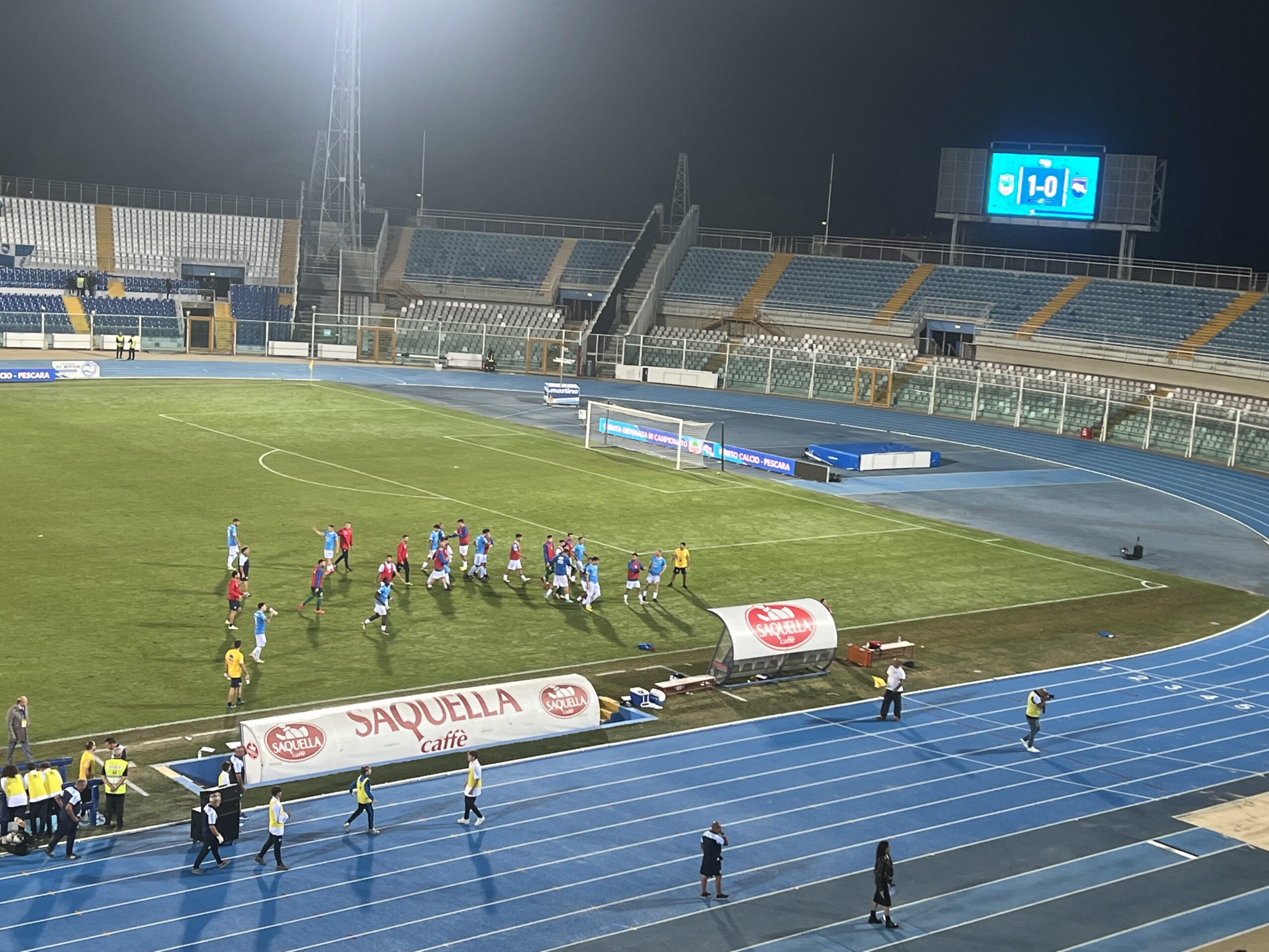 Serie C Pineto Pescara, fa festa la neopromossa del presidente Brocco. Decide un gol di Gambale. Merola e Cangiano sciupano, Brosco regala all’ex Avellino la palla che regala ai teramani tre punti preziosissimi.