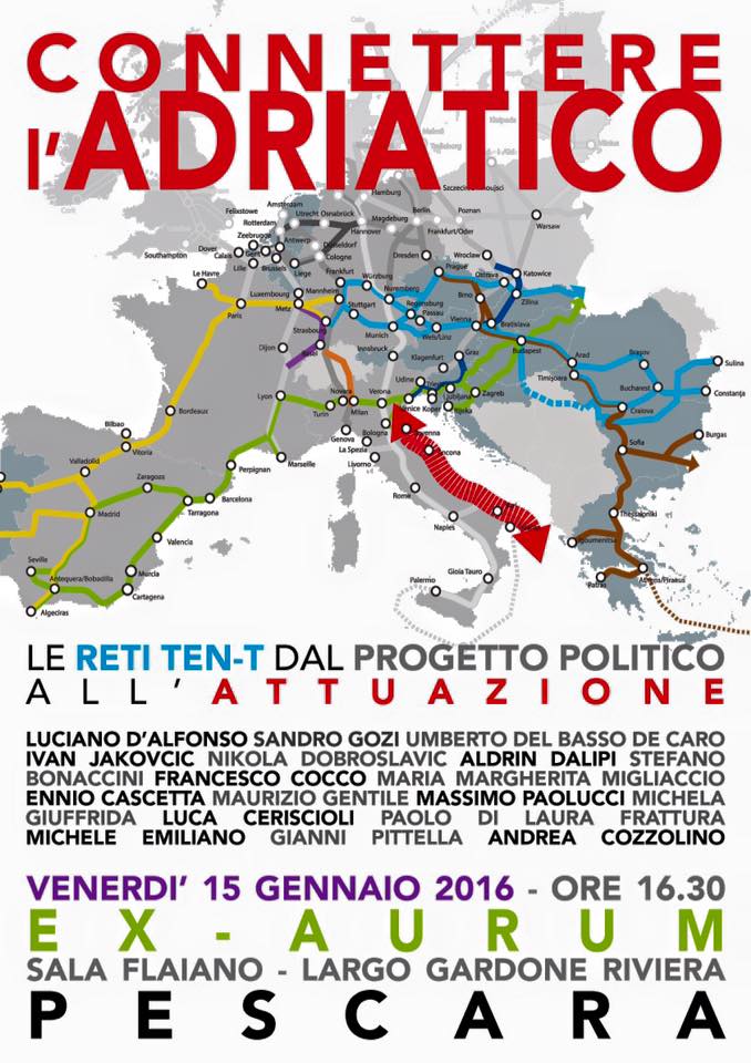 Tutto pronto a Pescara per la giornata-evento dal tema ‘Connettere l’Adriatico. Le Reti TEN-T: dal progetto politico all’attuazione’, in programma oggi pomeriggio a partire dalle 16 all’Aurum.
