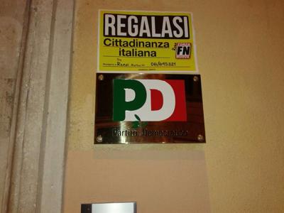 La scorsa notte i militanti di Forza Nuova hanno affisso sui portoni delle sedi della segreteria Pd di Atessa Avezzano , Montesilvano , Nereto , Pescara, Sulmona, Teramo e Vasto, e della federazione provinciale di Pescara Sel alcuni cartelli in merito alla recente votazione positiva, avvenuta alla Camera, sul disegno di legge che vorrebbe introdurre la cittadinanza breve agli immigrati, fondandola sui criteri dello Ius Soli e dello Ius Culturae. Sul cartello compare la scritta “Regalasi cittadinanza italiana”, a sottolineare, a detta di Forza Nuova, i blandi criteri che si vogliono introdurre in materia per i cosiddetti nuovi italiani.