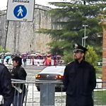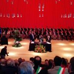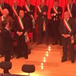 - Ore 9,45: l’attesa dei sindaci abruzzesi con le fasce tricolori sul palco dell’auditorium di Renzo Piano