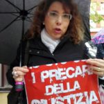 - Ad accogliere il premier anche alcuni presidi di lavoratori: qui una precaria della giustizia