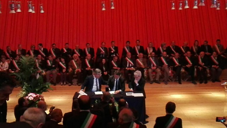 E’ quanto prevede il masterplan Abruzzo-Patto per il Sud firmato stamani a L’Aquila, all’Auditorium Renzo Piano, tra il presidente del Consiglio dei ministri, Matteo Renzi, ed il governatore della Regione, Luciano D’Alfonso. Presente alla sottoscrizione del documento anche il sottosegretario alla Presidenza del Consiglio dei ministri, Claudio De Vincenti. Il masterplan prevede quattro capitoli per un totale di 77 interventi spalmati sul territorio. I progetti riguardano in particolare infrastrutture (612 milioni per 30 interventi), ambiente (477 milioni per 19 interventi), sviluppo economico (157 milioni per 6 interventi), turismo e cultura (255 milioni per 22 interventi). Interventi che saranno finanziati da qui al 2020 con risorse nazionali, dell’Ue e del Fondo per lo sviluppo e la coesione, ma anche ricorrendo ad altri strumenti finanziari quali i fondi rotativi o project financing. Per quanto riguarda l’ambiente, gli investimenti sono quasi tutti sul sistema della depurazione e della difesa idraulica del suolo. Una somma rilevante, 50 milioni di euro, riguarda progetti per il miglioramento della rete irrigua del Fucino. Presenti alla firma una nutrita rappresentanza di sindaci (compresi i quattro primi cittadini dei capoluoghi di provincia), di vari rappresentanti di categorie produttive e sindacati.