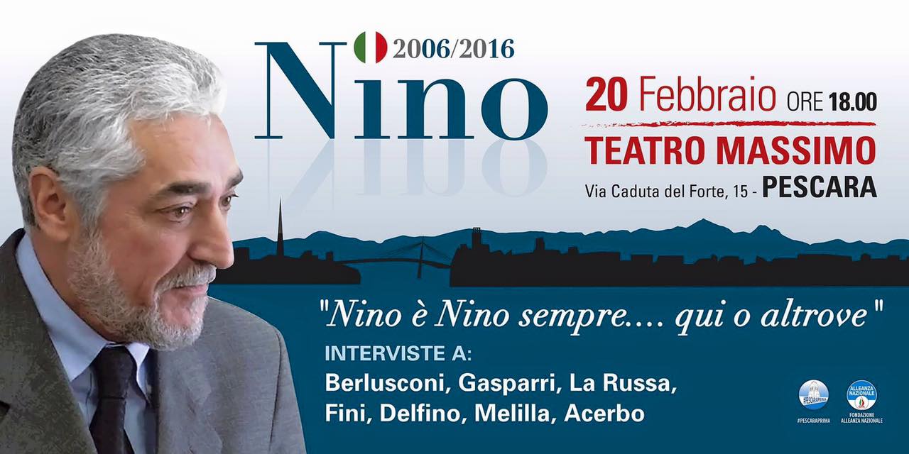 Nel corso della serata sarà proiettato un docu-film dal titolo “Nino è Nino sempre…. qui o altrove”. Interviste a Berlusconi, Gasparri, La Russa, Fini, Delfino, Melilla e Acerbo. Dopo la maturità come perito chimico industriale, Nino Sospiri si è da subito impegnato in politica con il Movimento Sociale e negli anni successivi fu presidente dall’associazione giovanile di destra Giovane Italia. Dopo aver svolto il servizio militare a Civitavecchia nel 1º Reggimento Bersaglieri 1º battaglione 2ª compagnia nei primi anni settanta, Sospiri nel ’75 è stato eletto segretario comunale del MSI a Pescara e consigliere comunale nella stessa città, due anni dopo entrò a far parte del Comitato Centrale e nel 1980 della Direzione nazionale del partito, di cui dirige i settori nazionali sicurezza sociale e comuni e province. Nel 1984 la nomina a segretario regionale del MSI in Abruzzo e due anni dopo l’ingresso nella segreteria nazionale del partito. Segretario nazionale amministrativo nel 1990 e parlamentare per sette legislature dal 1979 al 2006, negli ultimi anni di vita Sospiri fu esponente di AN e Sottosegretario ai Trasporti nel Governo Berlusconi. Morì a causa di un male incurabile durante il suo incarico nell’esecutivo, presso l’Ospedale civile Spirito Santo di Pescara.