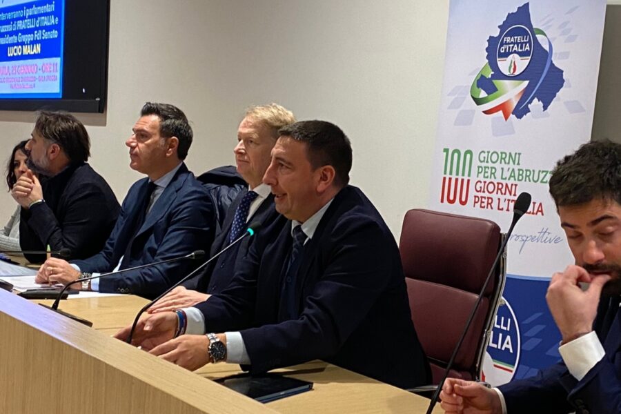 “Cento giorni per l’Abruzzo, cento giorni per l’Italia”. E’ stato il tema della conferenza stampa convocata dal gruppo di Fratelli d’Italia in consiglio regionale per illustrare i risultati raggiunti dal governo Meloni a beneficio dell’Abruzzo. Ma è stata dettata anche la linea programmatica per il futuro