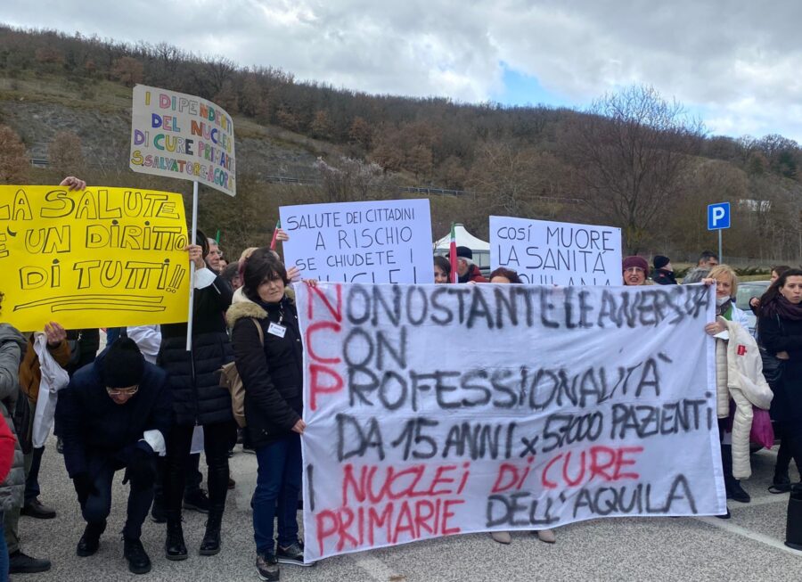 Lo avevano annunciato e la protesta prosegue. Oggi sindacati, medici e comitato cittadino si sono ritrovati davanti la sede della Asl in via Saragat a L’Aquila per un sit in di protesta