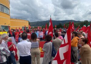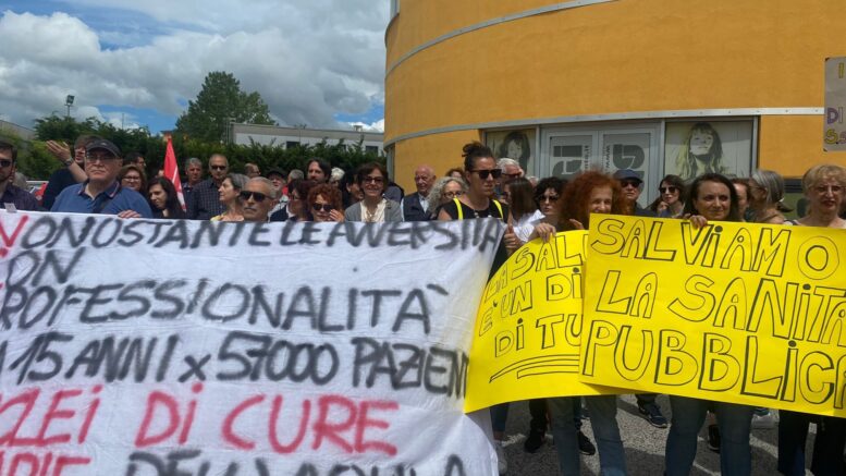 A L’Aquila sono scesi in campo i sindacati di medici e tante associazioni che hanno aderito al sit-in dinanzi alla direzione generale della Asl n.1