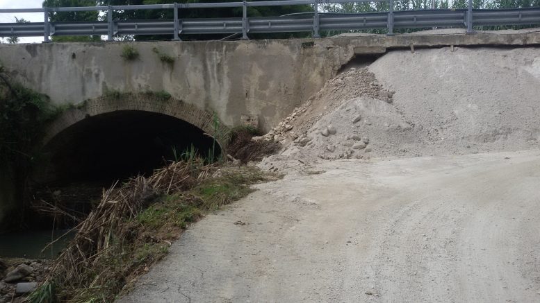 Invio foto del ponte e della strada sottostante e dello stato del tratto di fiume interessato dal crollo. Cordiali saluti”.