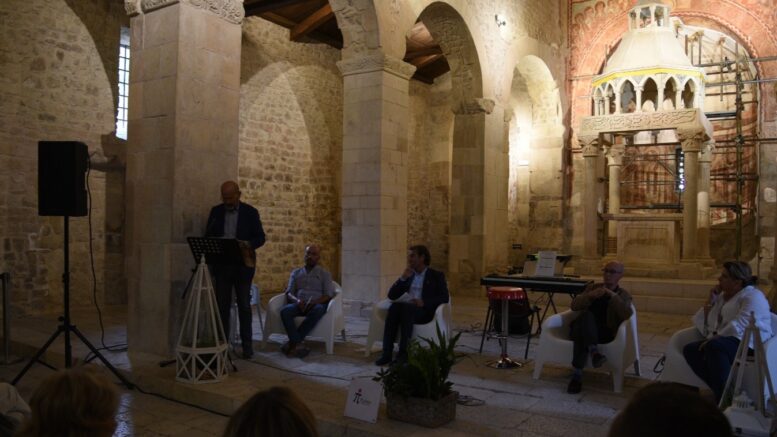 Dopo la presentazione dei libri di Maristella Lippolis, Federico Falcone sulla vita di Vito Taccone e dell’istallazione artistica lungo il fiume dell’opera dell’artista Marco Mazzei, a venti anni esatti dalla pubblicazione del primo volume sul fiume Tirino di Luciano, a cura del fotografo Luciano D’Angelo con testi di Pino Greco, si è svolta, nella splendida cornice della Abbazia di San Pietro ad Oratorium, una nuova iniziativa in ricordo dello scomparso Pino Greco che a quel volume seppe dare un’anima.