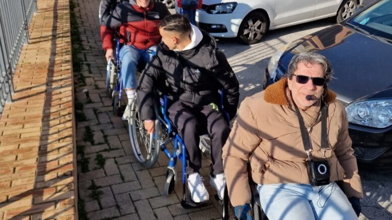 Ai primi giorni in aula tenutisi nella sala polifunzionale “Osvaldo Mazzocchetti” messa a disposizione dell’amministrazione comunale, che ha visto ospite anche Donatella Ruggeri della Accessibilità e Eventi Deaf APS per parlare dell’inclusione delle persone sorde, è seguita oggi la passeggiata empatica in carrozzina e il percorso per non vedenti realizzato da Valentina Lanti, socia non vedente delle carrozzine, a cui hanno assistito anche i ragazzi della seconda media del plesso Giansante. Abbattere le barriere sociali e culturali, contribuire fattivamente all’abbattimento di quelle architettoniche, queste le sfide per i liceali.