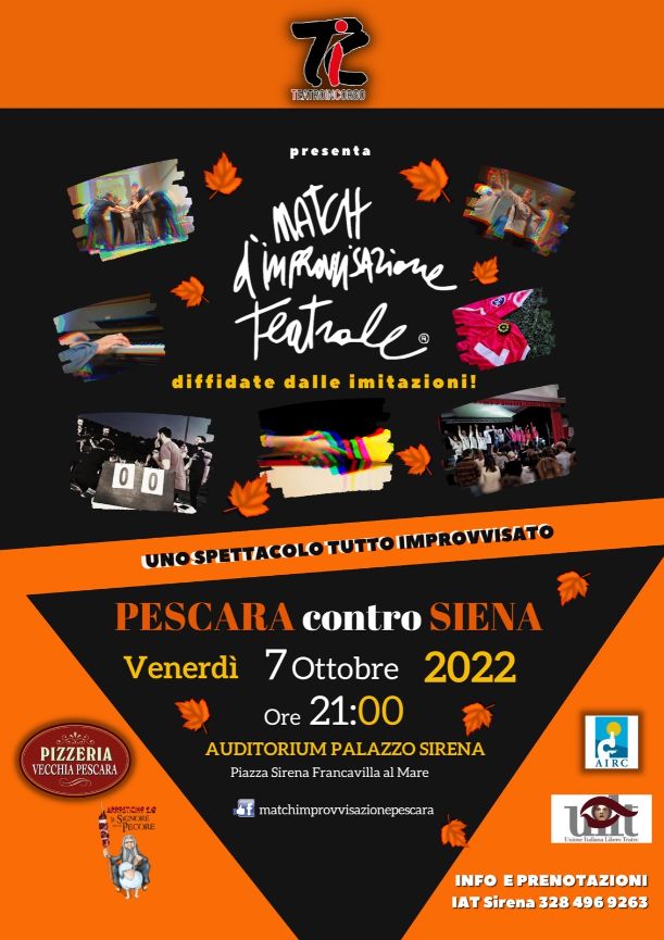 Prende, dunque, il via, dopo la pausa estiva, la nuova stagione di TIC “TeatroInCorso”, la compagnia teatrale che ha introdotto in Abruzzo i “Match d’Improvvisazione Teatrale®”. Venerdì 7 ottobre, alle 21.00, presso l’Auditorium di Palazzo Sirena a Francavilla al Mare di scena la consueta sfida tra attori pescaresi ed attori provenienti da Siena guidati da Francesco Burroni, l’artista che dal Canada ha introdotto in Italia i “Match d’Improvvisazione Teatrale®”. A guidare la squadra pescarese, Mara Di Bartolomeo, tra le più apprezzate “improvvisatrici” e la prima ad introdurre questo format in Abruzzo.