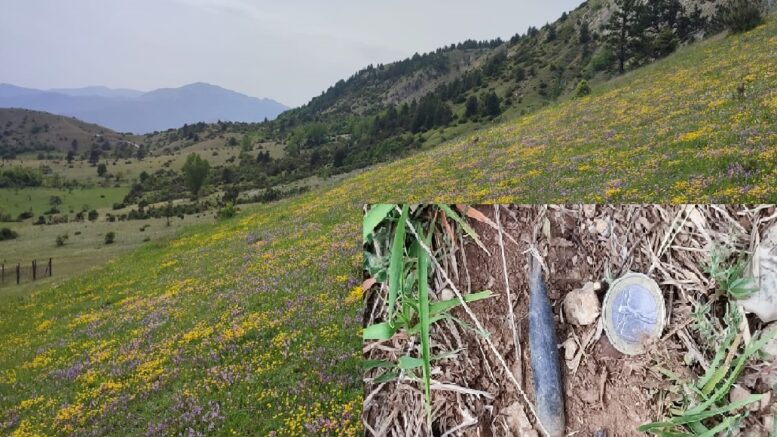 A Monte Stabiata a L’Aquila rifiuti di materiale bellico tra i prati al poligono usato dall’esercito, con sostanze dai colori poco rassicuranti che si disperdono sul terreno
