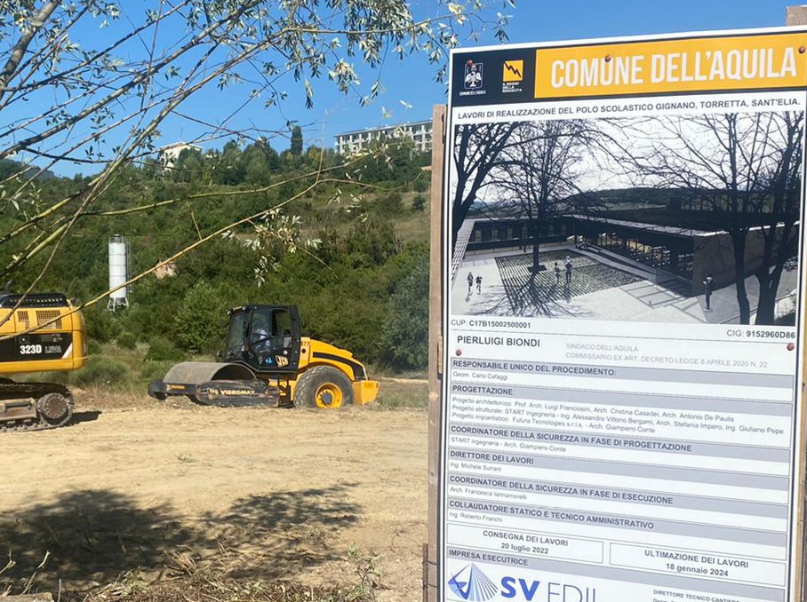 Dopo qualche intoppo, compresa la gara d’appalto che è stata rifatta per inadempimenti contrattuali della ditta, è stata messa finalmente la prima pietra sulla realizzazione della scuola che accorperà diversi istituti. L’ultimazione dei lavori è prevista per il 18 febbraio del 2024 indicativamente. La ditta che si occuperà dei lavori è la “Sv Edil” che ha sede anche all’Aquila.