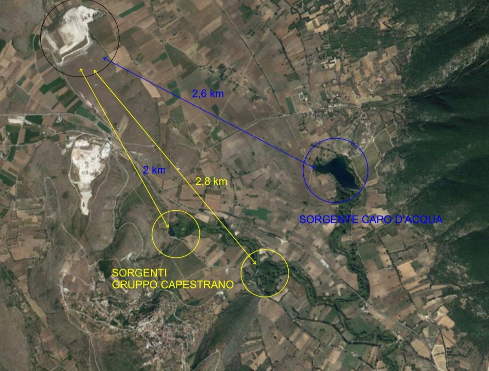 “Il tutto sarebbe infatti realizzato proprio sopra quella che uno studio dell’Ente Regionale Servizio Idrico – ERSI – individua come area da perimetrare come ZONA DI PROTEZIONE per la falda acquifera e la risorsa idropotabile. Lo stesso studio di impatto ambientale non può non evidenziarlo, presentando anche le varie sorgenti, come quelle di Capodacqua e di Capestrano, poste appena a valle in cui riemerge l’acqua che si infiltra a monte. Studio costato 440.000 euro e che dal 2017 giace nei cassetti della Regione, ente che per legge fin dal 2006 avrebbe dovuto prevedere specifiche limitazioni all’utilizzo del territorio per tutelare appunto il patrimonio idrico d’interesse per la produzione di acque potabili in quanto quello che accade sulle aree di ricarica delle falde può riflettersi poi sulla qualità dell’acqua a valle, ad esempio a causa dell’infiltrazione di contaminanti. Vincoli che senza approvazione non sono ovviamente vigenti lasciando questi territori alla mercé di qualsiasi nuovo progetto potenzialmente impattante sulla risorsa idrica. Il caso del Gran Sasso e quello di Bussi, entrambi esempi chiarissimi dell’inopportunità di inserire centri di pericolo sulle falde acquifere, paiono non aver insegnato nulla”.