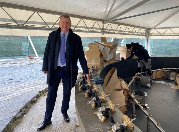 Presto, anche in una giornata grigia come questa, luci, musica e colori della nuova fontana faranno brillare Piazza Salotto. Lo sottolinea sul suo profilo social, l’assessore comunale Luigi Albore Mascia il quale sottolinea che a giorni dovrebbero essere ultimati i lavori. La fontana, come è noto, avrà intorno i tasti di un pianoforte, tramite i quali potranno essere attivate luci, musica e giochi d’acqua. La realizzazione dell’opera prevede una spesa di poco superiore ai 300mila euro. Il progetto della fontana è stato realizzato dall’architetto Antonio Milillo, che è anche direttore dei lavori, mentre la parte ingegneristica è stata realizzata dell’artista, scultore e designer italiano Remo Saraceni.