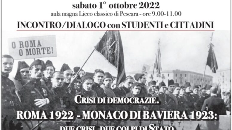 Il tema dell’incontro: “Crisi di democrazie: Roma 1922 – Monaco di Baviera 1923, due crisi, due colpi di Stato”. In occasione del centenario della presa del potere da parte del fascismo (1922-2022).