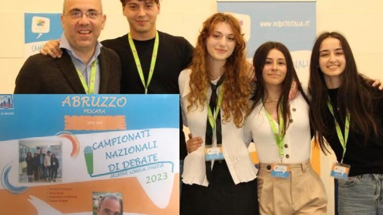 La squadra del Liceo pescarese, composta da Tesira Di Giovanni, Chiara Di Bello, Alessandro Tomaiuolo e Ilaria Ruzzi e guidata dal Prof. Gianluca Presutti, in rappresentanza dell’Abruzzo, ha battuto in finale la rappresentanza della Puglia (dell’Istituto Fermi Monticelli). E così ha vinto il Campionato nazionale di debate in lingua inglese 2023, svoltosi a Marina di Massa dal 2 al 6 maggio. L’ultimo dibattito, quello della finale, ha riguardato la seguente questione: “This House would introduce a global carbon tax”. La squadra del Galilei, che ha sostenuto la mozione in quanto Casa pro (o di governo), si è aggiudicata la gara con il giudizio unanime della giuria. Non solo: una sua oratrice, Tesira Di Giovanni, che fa parte anche della Nazionale italiana di debate, ha vinto anche il trofeo di migliore speaker del torneo in lingua inglese. Il Dirigente del Galilei, prof. Carlo Cappello, ha commentato in questo modo tali risultati: