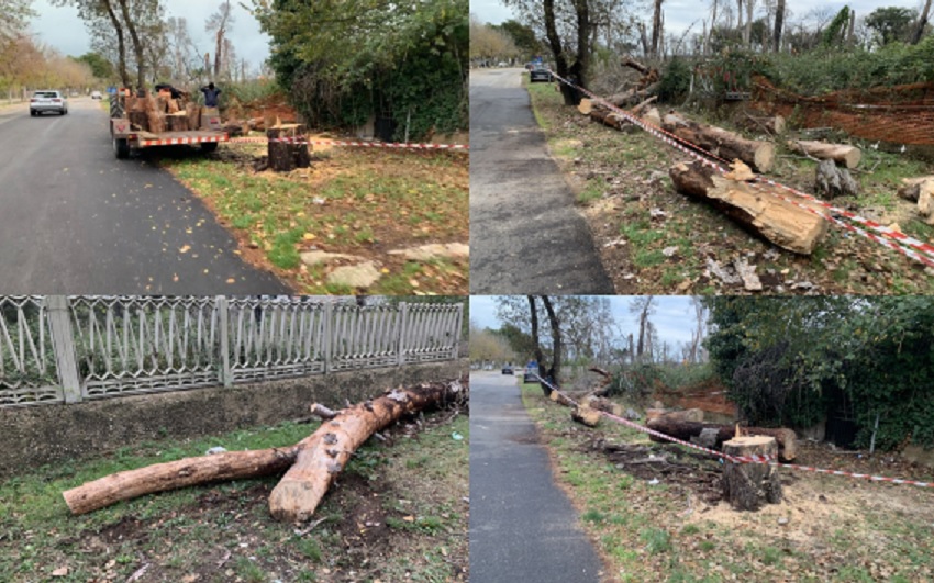 “Sa tanto di cadavere, la quercia caduta pochi giorni fa su via Via della Bonifica, strada poi messa in sicurezza dalla protezione civile e dagli operai di Ambiente. Il tronco è stato rimosso, ridotto nella pezzatura, accatastato e recintato. Si tratta di legname che appartiene al patrimonio della Riserva Dannunziana e come tale sottoposto al PAN che ne vieta l’asportazione. Invece il giorno dopo la lunga e difficile giornata di pioggia c’era già qualcuno, con tanto di motosega, che stava già lavorando ad un ulteriore sezionamento del tronco, per portarsi via quello che entrava in auto. Ma dopo la pausa di ieri, questa mattina sono arrivati altri, meglio armati e con attrezzature più professionali: motosega, con tanica di benzina, trattore e carrello. Stanno portando via la roverella, pezzo per pezzo. Non vedo divise, se non abiti da lavoro di … campagna, non ci sono segnalazioni di sorta relativo ad un presunto cantiere, e non so se hanno autorizzazioni.
