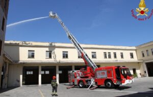 Questa mattina alle ore 10.00, presso la Sede Centrale di viale Pindaro, si è svolta la cerimonia di benedizione e messa in servizio della nuova Autoscala MAGIRUS DLA, insieme ad altri due automezzi operativi recentemente assegnati al Comando dei Vigili del Fuoco di Pescara. Alla cerimonia hanno partecipato l’Arcivescovo Mons. Tommaso Valentinetti, il Prefetto di Pescara Giancarlo Di Vincenzo e Don Amedeo Rossi, Parroco della chiesa San Luigi Gonzaga, accolti dal Comandante Luca Verna e con la presenza di tutto il personale operativo e amministrativo in servizio nella Sede.