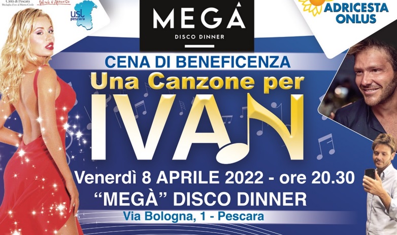 Venerdì 8 aprile alle ore 20,30 al MEGÀ DISCO Dinner di Pescara si svolgerà la serata di beneficenza dal titolo “Una Canzone per Ivan”, con il Patrocinio del Comune Pescara e della ASL Pescara.