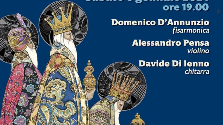 Con questa consapevolezza nel cuore vogliamo vivere l’Epifania anche nel segno della musica. SABATO 6 GENNAIO 2024, nella CHIESA SAN PAOLO APOSTOLO a VASTO, alle ore 19.00, si terrà il CONCERTO DELL’EPIFANIA. L’evento è promosso dall’Assessorato alla Cultura del Comune di Vasto e organizzato dalla Scuola Civica Musicale in collaborazione con la Parrocchia San Paolo Apostolo. Il ricco repertorio di brani di Bach, Vivaldi, Rossini, Gruber, Léfebrue-Wély e tanti altri sarà eseguito da tre musicisti di talento: Domenico D’Annunzio (fisarmonica), Alessandro Pensa (violino) e Davide Di Ienno (chitarra). L’ingresso è libero.