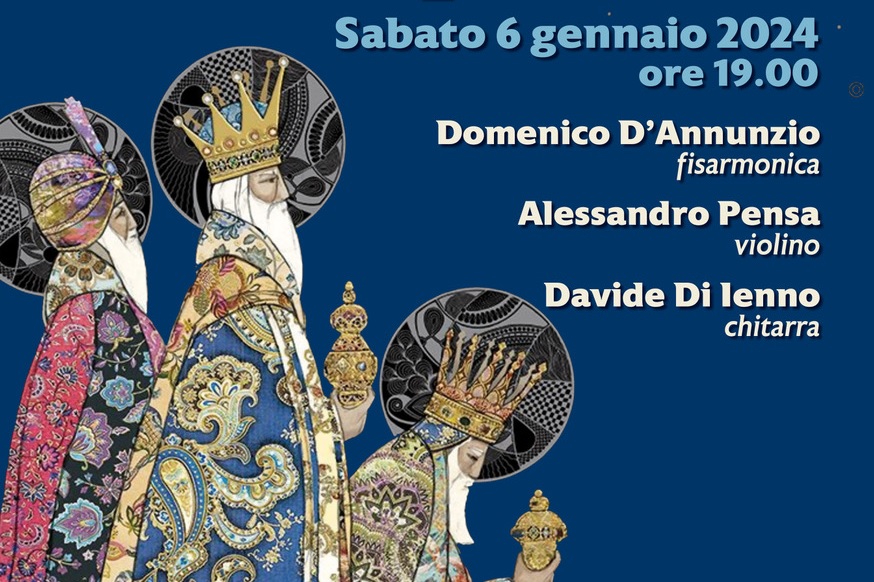 Con questa consapevolezza nel cuore vogliamo vivere l’Epifania anche nel segno della musica. SABATO 6 GENNAIO 2024, nella CHIESA SAN PAOLO APOSTOLO a VASTO, alle ore 19.00, si terrà il CONCERTO DELL’EPIFANIA. L’evento è promosso dall’Assessorato alla Cultura del Comune di Vasto e organizzato dalla Scuola Civica Musicale in collaborazione con la Parrocchia San Paolo Apostolo. Il ricco repertorio di brani di Bach, Vivaldi, Rossini, Gruber, Léfebrue-Wély e tanti altri sarà eseguito da tre musicisti di talento: Domenico D’Annunzio (fisarmonica), Alessandro Pensa (violino) e Davide Di Ienno (chitarra). L’ingresso è libero.