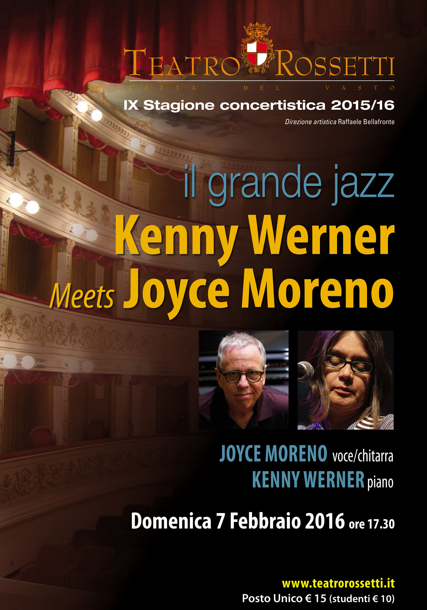 Il grande jazz al Rossetti di Vasto. Due grandi protagonisti della musica internazionale Joyce Moreno, definita dal Down Beat come “un tesoro brasiliano” ed una delle migliori cantanti di tutti i tempi, e Kenny Werner, uno dei pianisti più colti e passionali d’America. saranno al teatro Rossetti, domenica 7 febbraio alle 17.30. Joyce è stata una delle prime cantanti a rivalutare l’immagine femminile nella musica brasiliana. Molti suoi album hanno ricevuto nomination per il Grammy Awards e sono stati realizzati con la maggior parte degli artisti più significativi e conosciuti del mondo brasiliano. Kenny Werner è stato definito dal New York Times “un pianista dalla tecnica eccezionale e dal forte temperamento rivolto a uno spiritualismo indagatore”. L’artista ha collaborato per diversi anni con Joe Lovano di cui è stato sideman per molto tempo. Acclamato per le sue composizioni e arrangiamenti per orchestra jazz, Werner ha ricevuto molti riconoscimenti tra i quali c’è il prestigioso premio Guggenheim. La partnership tra Joyce e Kenny Werner si è consolidata nel corso degli anni, passando dall’intesa prettamente musicale a un’amicizia vera. I due artisti propongono i testi delle più belle canzoni brasiliane oltre a splendide ballate italiane, inglesi, scozzesi e americane, significative per entrambi e quindi sentite col cuore, in una poesia che trascende senza confini.