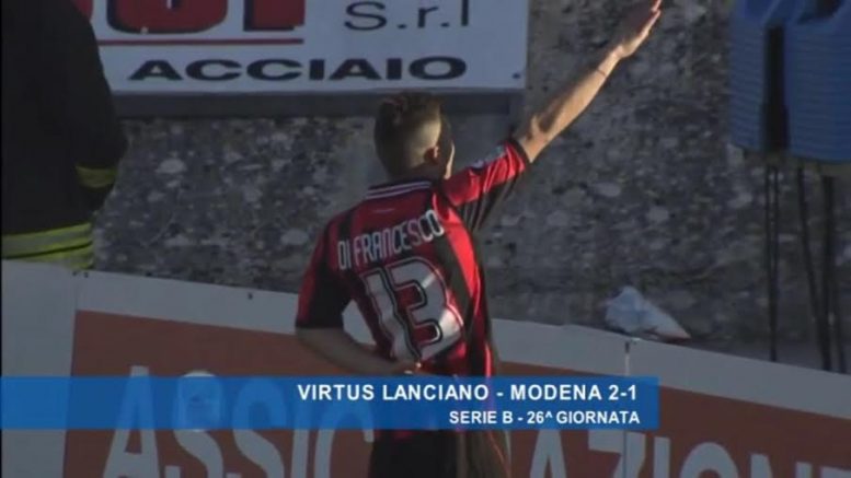 Lanciano Di Francesco. Dopo la rete del momentaneo pari nel match col Modena, il calciatore ha esultato sotto la curva col saluto romano. L’Ucoe stigmatizza.