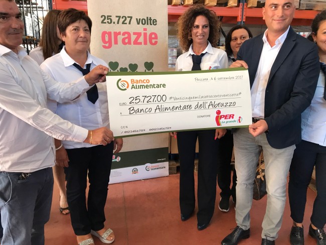 Soddisfazione anche da parte dei dirigenti Iper in Abruzzo già pronti a replicare l’iniziativa che ha previsto, tra l’altro, una bicicletta in premio a tre dipendenti che si sono particolarmente spese per promuovere in questi mesi il progetto. Ed intanto, esattamente fra tre giorni, il Banco Alimentare compie 20 anni:
