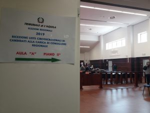 La presentazione delle liste (negli uffici circoscrizionali dei tribunali dei capoluoghi di provincia di ciascun collegio elettorale), è permessa da questa mattina alle 8 fino a mezzogiorno di domani, sabato 12 gennaio. La presentazione della lista dei candidati presidenti, invece, dev’essere effettuata nell’ufficio centrale regionale alla Corte d’Appello dell’Aquila.