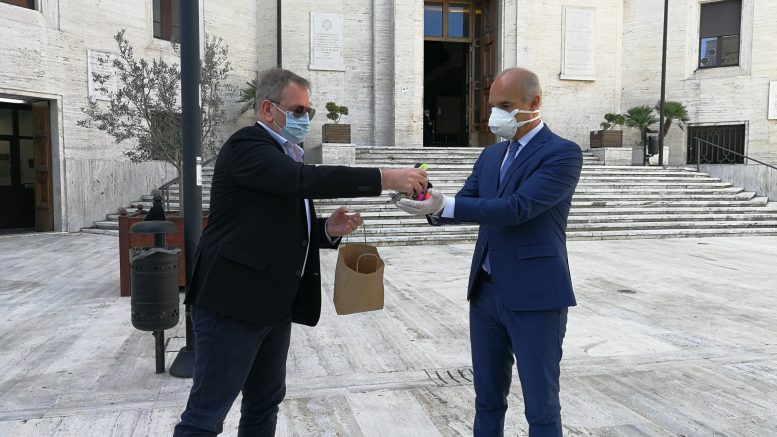 La situazione del settore del food and beverage a Pescara è pesantissima. La Confesetcenti si è fatta portavoce delle rivendicazioni degli esercenti che operano nella zona di piazza Muzii, dove sono concentrati tanti locali che animano la movida cittadina. In molti rischiano di non ripartire quando il 2 giugno, secondo decreto, sarà possibile riaprire le attività. Dopo il flash mob di ieri sera con le luci accese nei locali, oggi la consegna simbolica delle chiavi sotto palazzo di città. A consegnarle al sindaco Carlo Masci, il Direttore di Confesercenti Gianni Taucci.