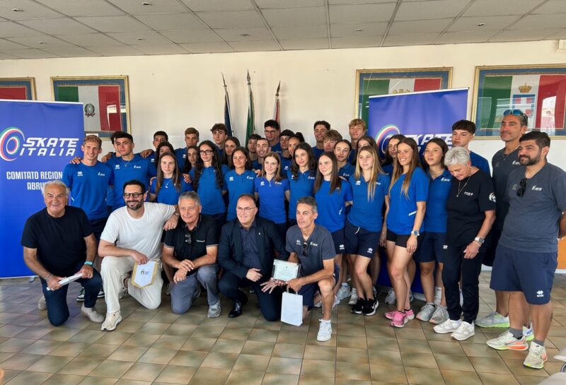 Il pattinodromo di Montesilvano si conferma un impianto all’avanguardia per ospitare eventi sportivi di livello nazionale. Il Commissario Tecnico della Nazionale Massimiliano Presti, ha speso parole di apprezzamento per la struttura sportiva. Stamani a Palazzo di Città i vertici della Federazione Italiana di Pattinaggio con gli atleti hanno partecipato ad un incontro pubblico, presenti tra gli altri il sindaco Ottavio De Martiniis e l’Assessore comunale allo Sport Alessandro Pompei. Per il Coni Abruzzo presente il Presidente Antonello Passacantando. Nel corso dell’incontro l’amministrazione comunale ha consegnato una targa al Ct Presti.