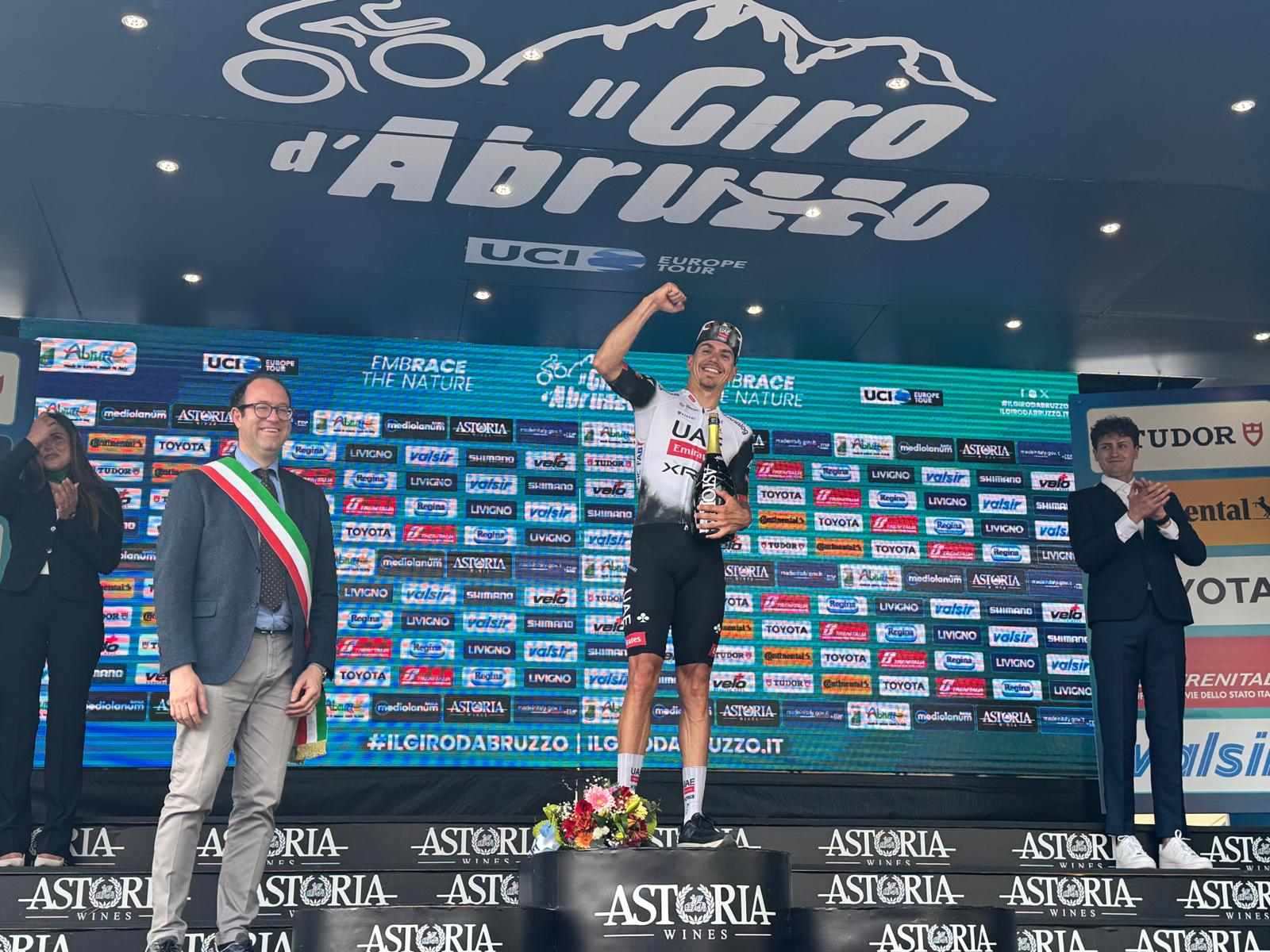 Il Giro d’Abruzzo riparte da Tocco da Casauria e arriva a Penne dopo 138 chilometri, 88,8 dei quali sono in salita o in discesa. Vince Ivo Oliveira, portoghese della UAE