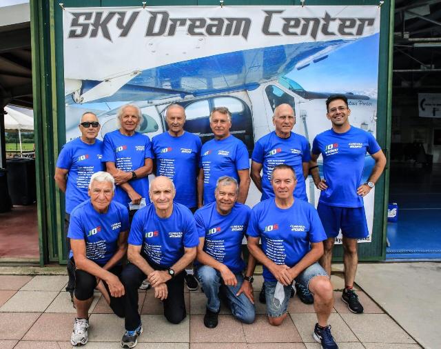 I nove “anzianotti” si sono lanciati da una quota di 4500 metri completando le figure, in caduta libera, entro i 45 secondi a disposizione, prima della separazione e apertura dei paracadute.