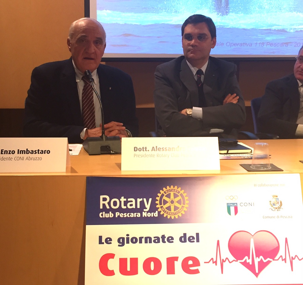 Sono intervenuti quali relatori Antonino Gabriele dirigente medico del Pronto Soccorso ASL Pescara, Rodolfo Cervelli Dirigente medico del 118 nella ASL Pescara, Alessandro Felizzi presidente Rotary Club Pescara Nord e Enzo Imbastaro presidente Coni Abruzzo, alla presenza di alcune società sportive e di rappresentanti delle federazioni sportive.
