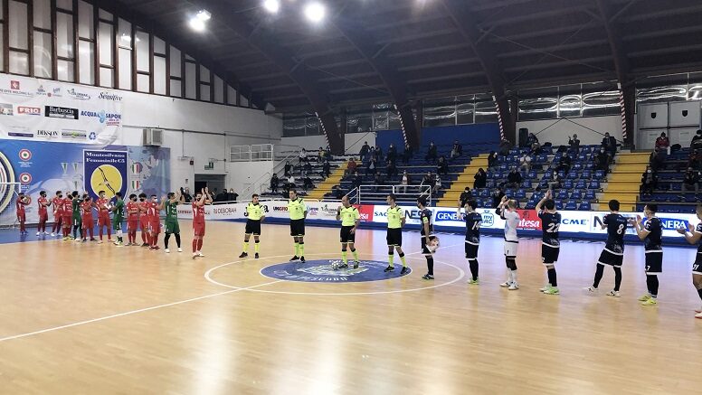Dopo un avvio di gara equilibrato, i campioni d’Italia 2019 iniziano a pigiare il piede sull’acceleratore accumulando palle gol. Il muro di Palusci regge grazie alle parate di Mazzocchetti, costretto a capitolare però sul finale di primo tempo: è Leandro Cuzzolino, al terzo gol in altrettante partite, a sbloccare la sfida con il suo mancino magico: botta dalla distanza e palla sotto al sette. Il vantaggio carica i biancorossi che a 5” dall’intervallo vanno ancora a segno con Borruto per il 2-0 con cui si va al riposo. Nella ripresa è una sinfonia rossiniana. Dopo neanche novanta secondi del secondo tempo Marcelinho fa tris, al quinto Taborda cala il poker e all’ottavo Canal con un grande pallonetto chiude la partita col gol del 5-0. Palusci ci prova con il portiere di movimento, il Pescara segna con Paulinho, ma la partita è ormai andata. A pochi istanti dalla sirena De Oliveira sigla il definitivo 1-6.