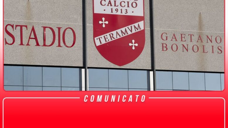 “Il Presidente Franco Iachini comunica dì aver, in data odierna, sottoscritto l’accordo preliminare per la cessione della quota di maggioranza della S.S. TERAMO CALCIO ad un gruppo di imprenditori facenti riferimento a E.M.G.A.T. ITALY SPA e che lo stesso rimarrà in carica nel suo ruolo di Presidente”.