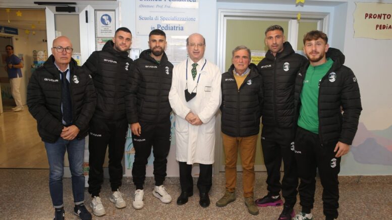 La delegazione era composta dal capitano Cosimo Forgione, dai calciatori Marco Schiavino, Simone Mercorelli e Riccardo Della Quercia, e dai Team Manager Mino Ianieri e Massimo Reale (in foto con il Professore Francesco Chiarelli, Direttore della Clinica Pediatrica). Un gesto semplice ma significativo, che ha reso speciale la giornata dei piccoli pazienti e delle loro famiglie, ribadendo l’importanza della vicinanza tra sport e territorio.