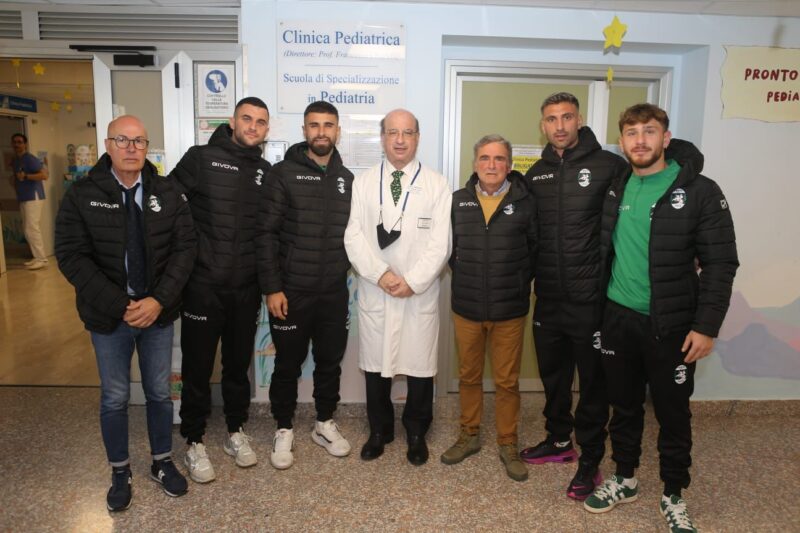 La delegazione era composta dal capitano Cosimo Forgione, dai calciatori Marco Schiavino, Simone Mercorelli e Riccardo Della Quercia, e dai Team Manager Mino Ianieri e Massimo Reale (in foto con il Professore Francesco Chiarelli, Direttore della Clinica Pediatrica). Un gesto semplice ma significativo, che ha reso speciale la giornata dei piccoli pazienti e delle loro famiglie, ribadendo l’importanza della vicinanza tra sport e territorio.