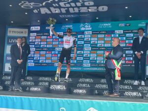 Braccia al cielo per Alessandro Covi nella prima tappa del Giro d’Abruzzo, la Scerni-Crecchio di 151 Km. Domani seconda frazione da Tocco da Casauria a Penne.
